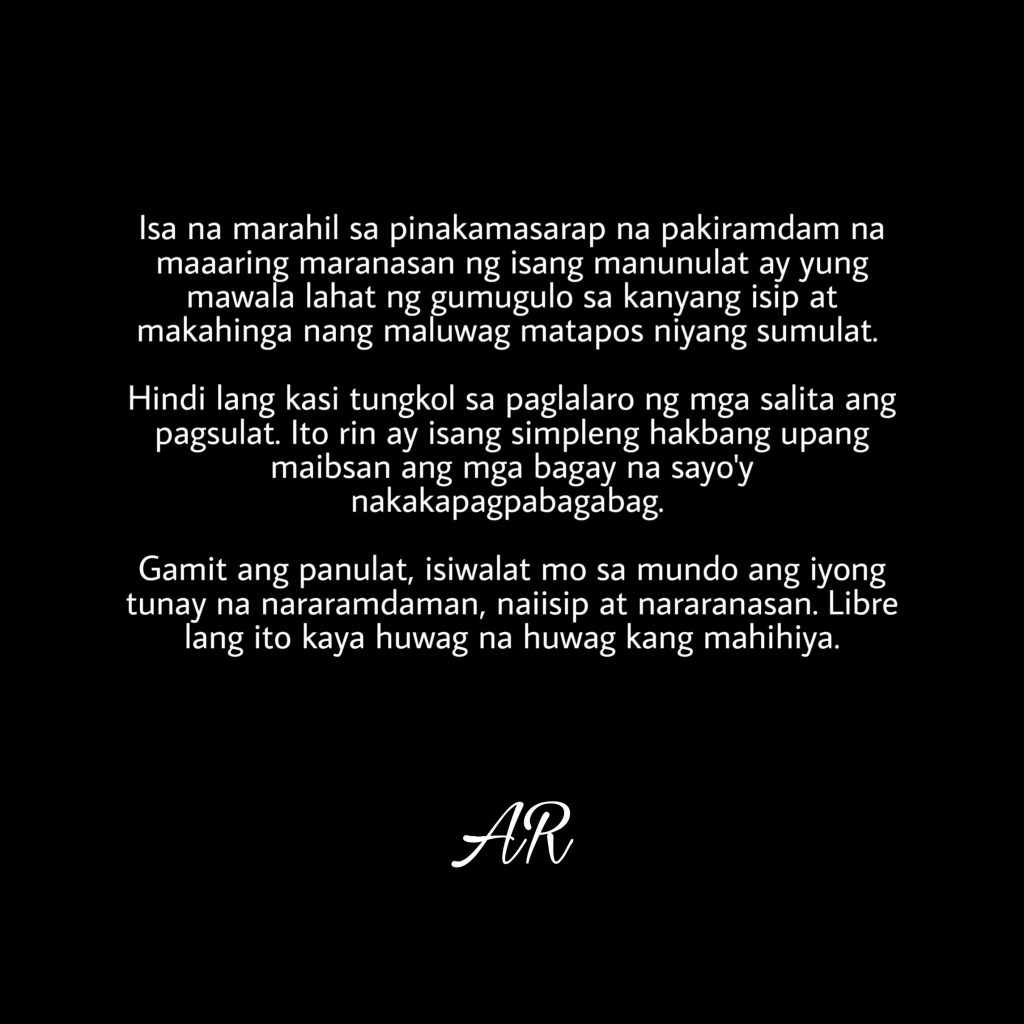 Ano pang hinihintay mo? Bakit hindi ka sumulat? Hayaan mong ang panulat ang mismong maglabas ng iyong mga nadarama.